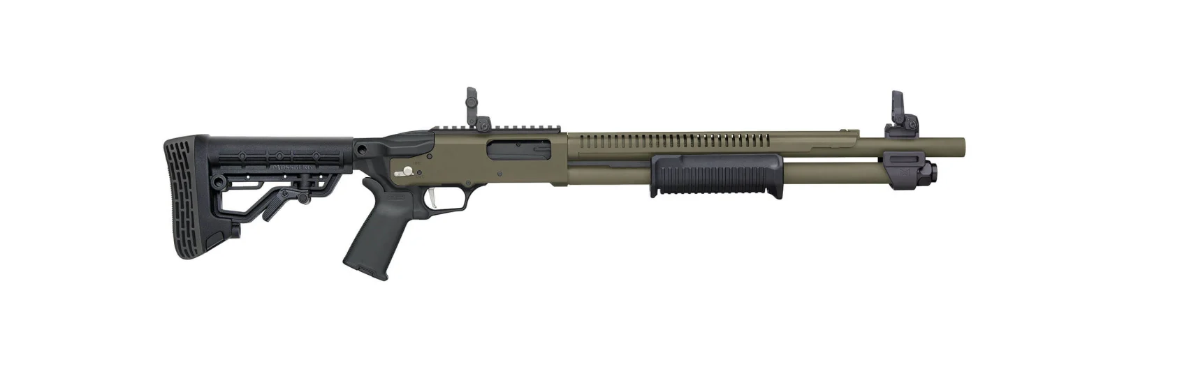 MOSSBERG 590R CERAKOTE 12G 3″ SHOTGUN 18.5″ W/ H.S., ODG, MOE GRIP/FLIP UP, 5 POSITION STOCK, 6+1