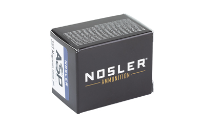 Nosler Assured Stopping Power (ASP) ammunition line combines match-grade accuracy with a reliable, effective, hollow-point bullet. Evolving from the Match Grade ammunition line, ASP ammunition is loaded with the same quality and attention to detail that Match Grade users have come to expect, with the addition of an expanding hollow-point bullet designed specifically for duty and defensive use. Loaded in Nosler headstamped brass, and utilizing quality components throughout, the ASP ammunition can be relied upon to perform in a wide variety of applications and ranges. Equally at home on duty or in a defensive role, Law Enforcement professionals and civilians alike can rest assured that ASP ammunition will perform when needed.